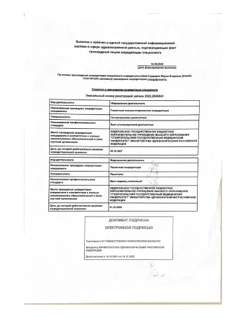 • 2022 — Ставропольский государственный медицинский университет (квалификация: врач-ультразвуковой диагност).